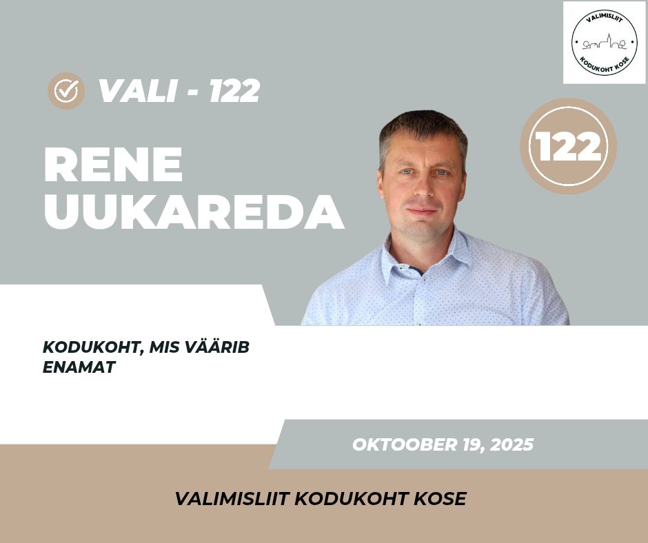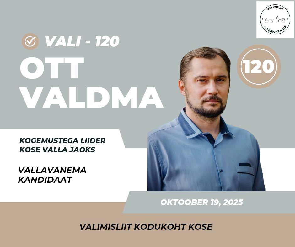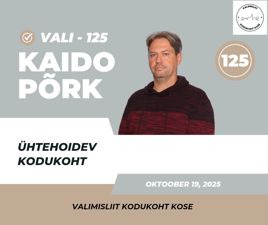 Valimisliit Kodukoht Kose tagab, et haridus ja kultuur hoiavad kogukonda koos. Meie otsused sünnivad ausalt ja läbipaistvalt. Me juhime valda kindlalt ja sihikindlalt, et iga inimene tunneks end siin turvaliselt, hoitult ja väärtustatuna. Me ei lepi raiskamise ja tühjade lubadustega – meie eesmärk on targalt juhitud vald, kus avalik raha teenib avalikku huvi ja kogukond on päriselt esikohal.