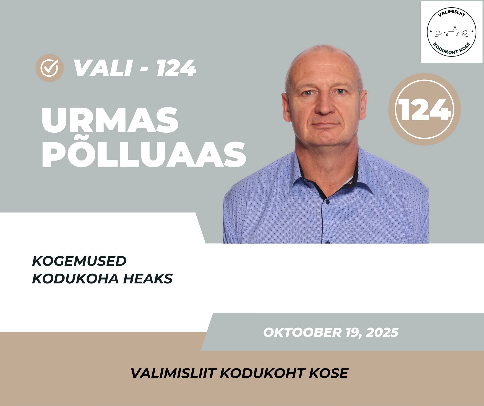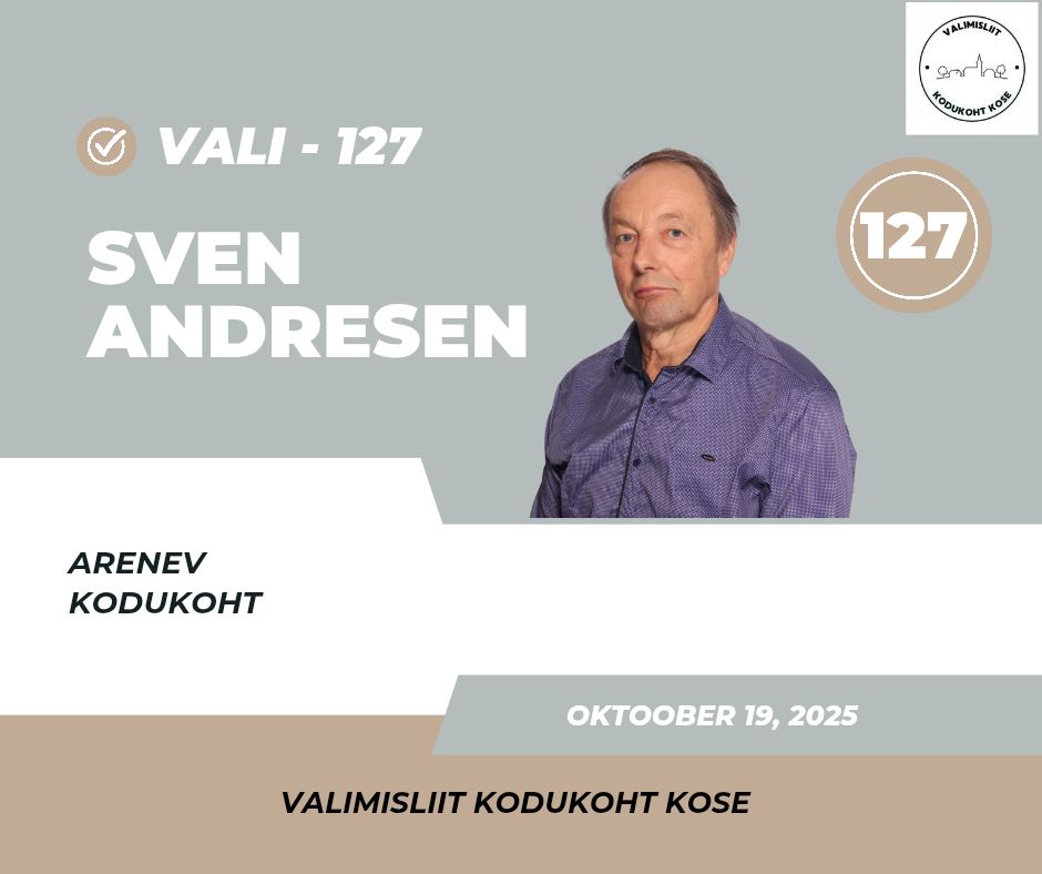 Vald peab tegutsema oma inimeste heaks ja õiguspärasel viisil. Olen vallavanema kandidaat ning juba ligi 16 aastat töötanud teie heaks – Kõue vallavanemana, Kose abivallavanemana ja volikogus ning komisjonides. Mul on kogemus ja teadmised, et juhtida Kose vald edasi, mitte tagasi.
